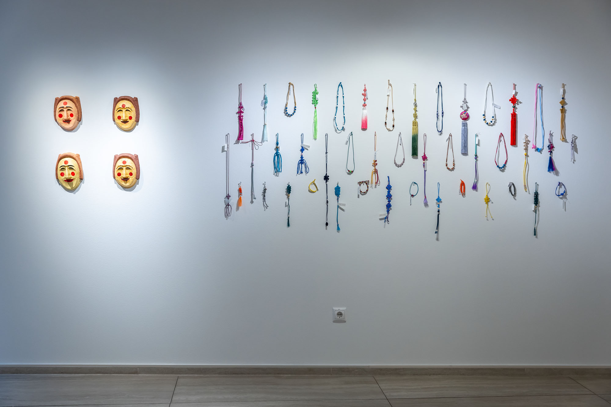 A kézműves kurzus a tradicionális koreai díszcsomózás (medup) és a kézzel készített koreai papírművészet (handzsi) világába vezeti be az érdeklődőket. A medup – a koreai kultúrában évszázadok óta jelen lévő dekoratív csomózási technika – nemcsak esztétikai, hanem szimbolikus jelentéssel is bír: az egyes csomók az örök kötelékeket, az időtlenséget és a szerencsét jelképezik. A handzsi ezzel szemben egy különleges, természetes rostokból készült koreai papír, amely rendkívüli tartóssága és szépsége miatt nemcsak írásra, hanem különféle dísztárgyak és használati eszközök készítésére is alkalmas. Jakab Krisztina vezetésével az alkotók nemcsak a két technika elsajátításában mélyedhetnek el, hanem a koreai kultúra praktikus, hétköznapi filozófiáját is felfedezhetik – azt a szemléletet, amelyben a szépség, a funkcionalitás és a lelki tartalom harmonikus egységet alkot. A kiállításon látható tárgyak ennek a műhelymunkának a legszebb példái.