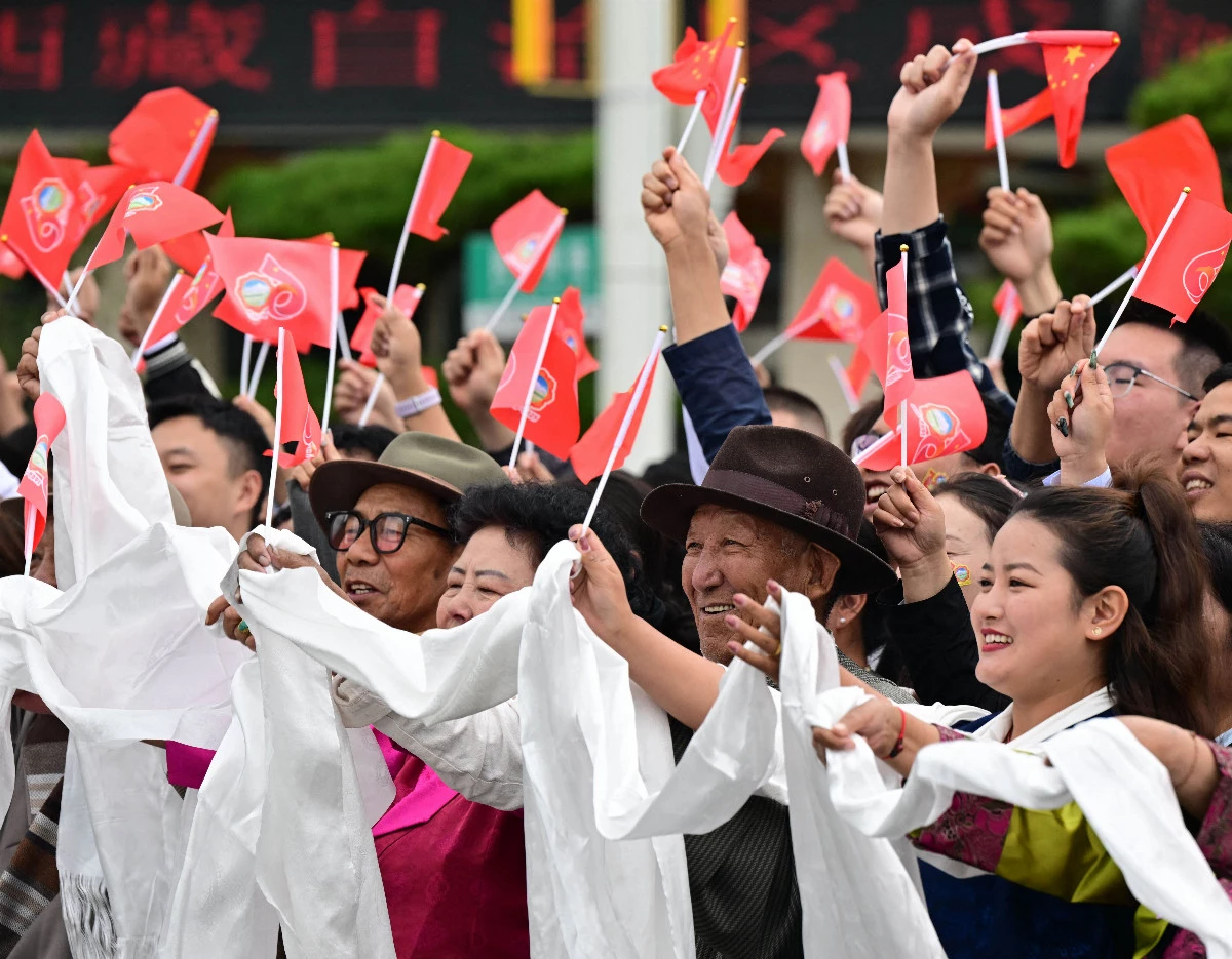 A beszámolók szerint Lhászában, a Potala-palota előtti téren mintegy húszezer helyi tisztségviselő és helyi lakos ünnepelt, vörös zászlókat lengetve és a kínai himnuszt énekelve. A tizenhárom emeletes, ezerszobás lhászai Potala-palota egykor a tibeti buddhizmus szellemi vezetője, a dalai láma téli rezidenciájaként szolgált.